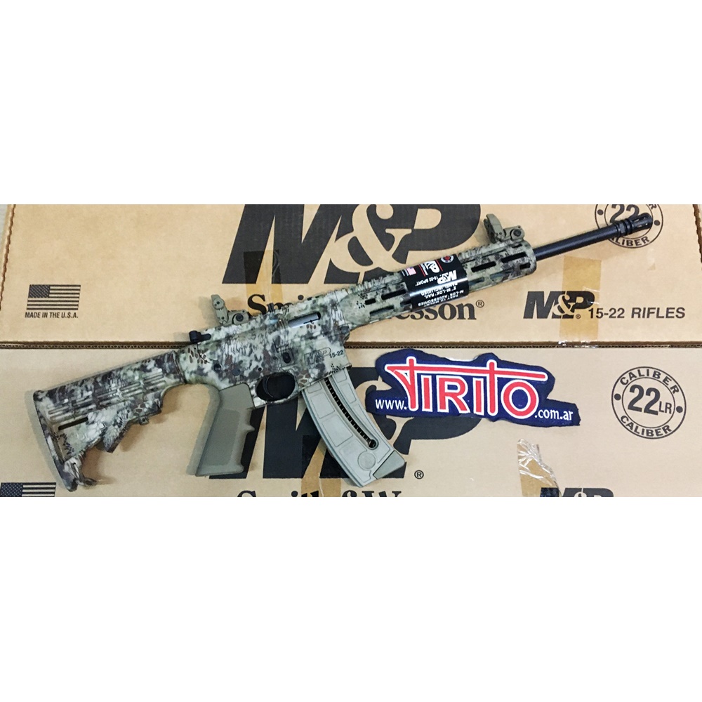 El M&P 15-22 SPORT Kryptek cuenta con un protector de mano delgado M&P de 10 pulgadas que incorpora el popular sistema Magpul M-LOK que permite a los propietarios personalizar fácilmente agregando accesorios sin quitar el protector de mano, tienen la opción de montar fácilmente numerosos accesorios compatibles con M-LOK, trae un riel picatinny superior que va a lo largo del cañón, cuenta con alza y guion plegables, tanto la culata como los visores y empuñadura son marca magpul, el acabado del cañón es de acero al carbono y la culata es polímero camuflado digital.