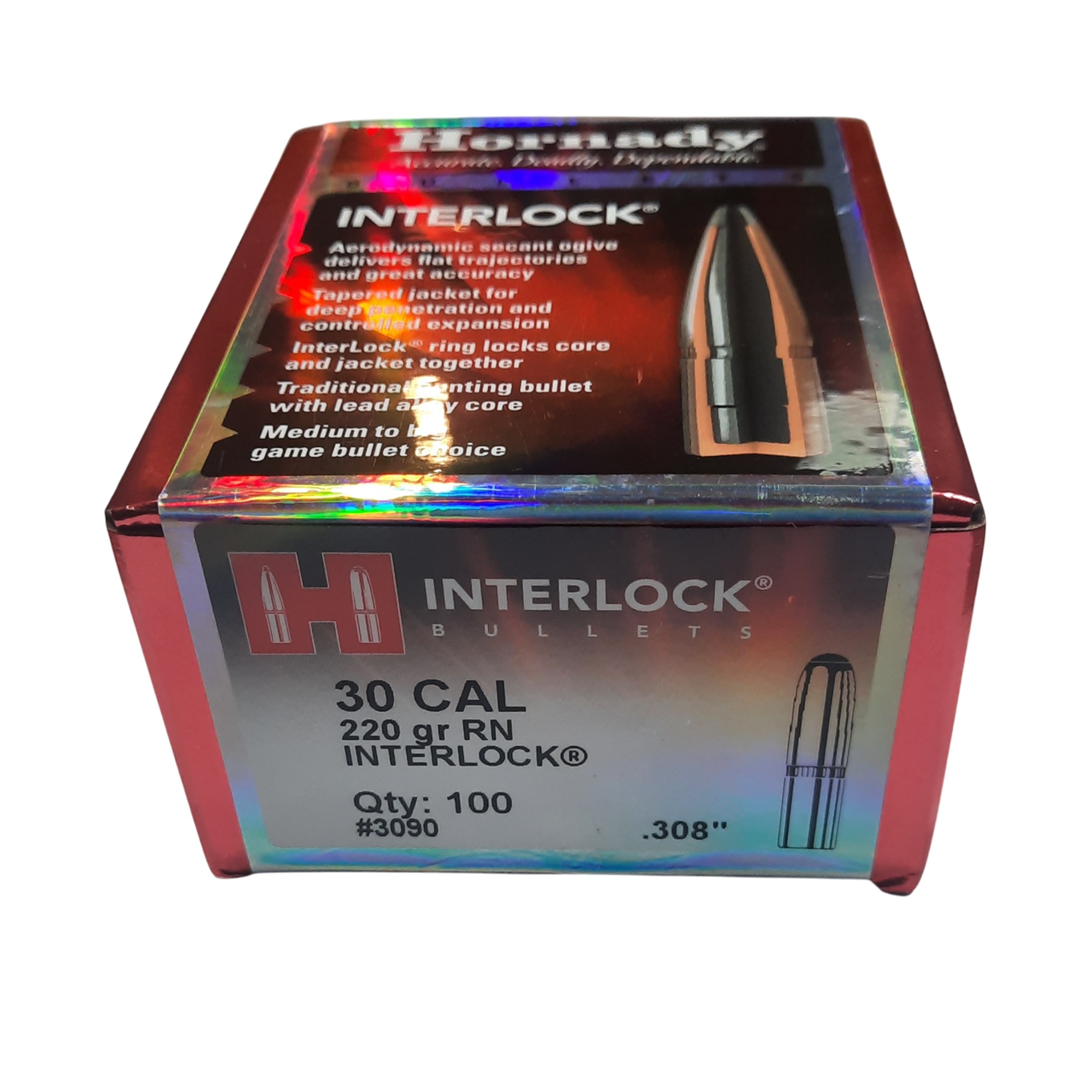 Puntas Hornady Calibre 30 Peso 220 grains Round Nose Interlock Caja x 100 unidades