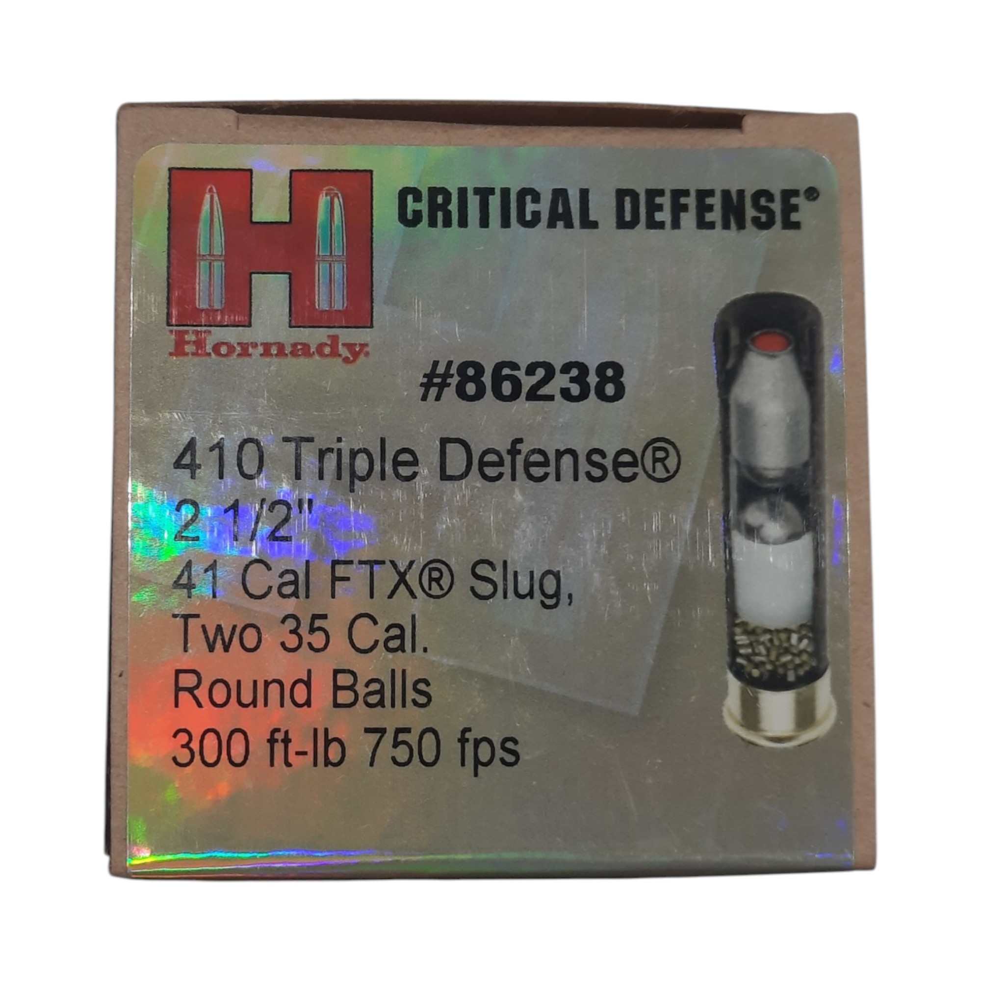 Triple Defense – Bala calibre .41 FTX seguida de dos postas de 9,5mm.
