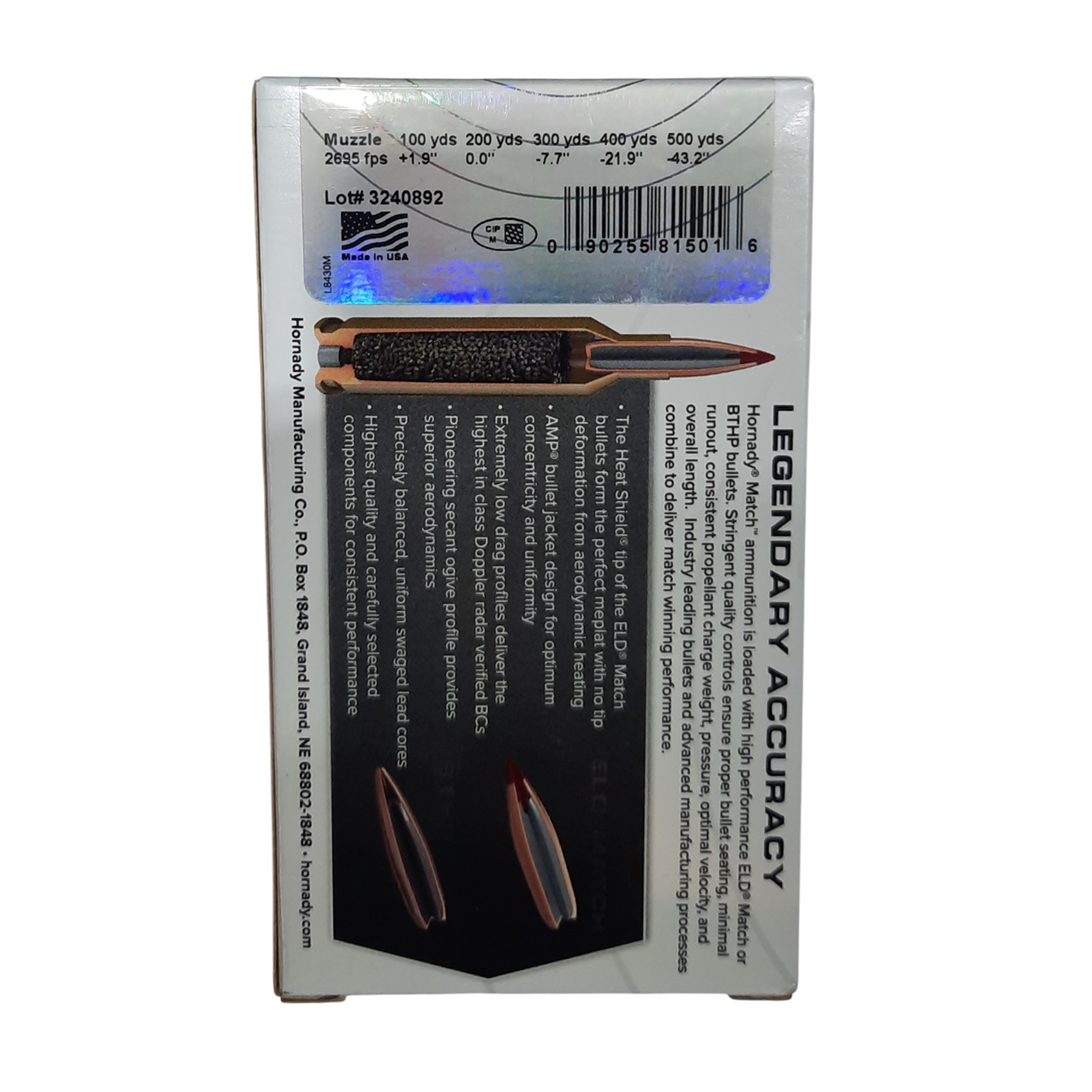 Municiones Hornady Match Calibre 6,5mm Creedmoor