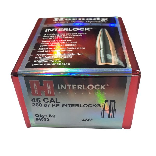 Puntas Hornady Calibre: 45 Peso: 300 grains, Interlock Hollow Point Caja x 50 unidades